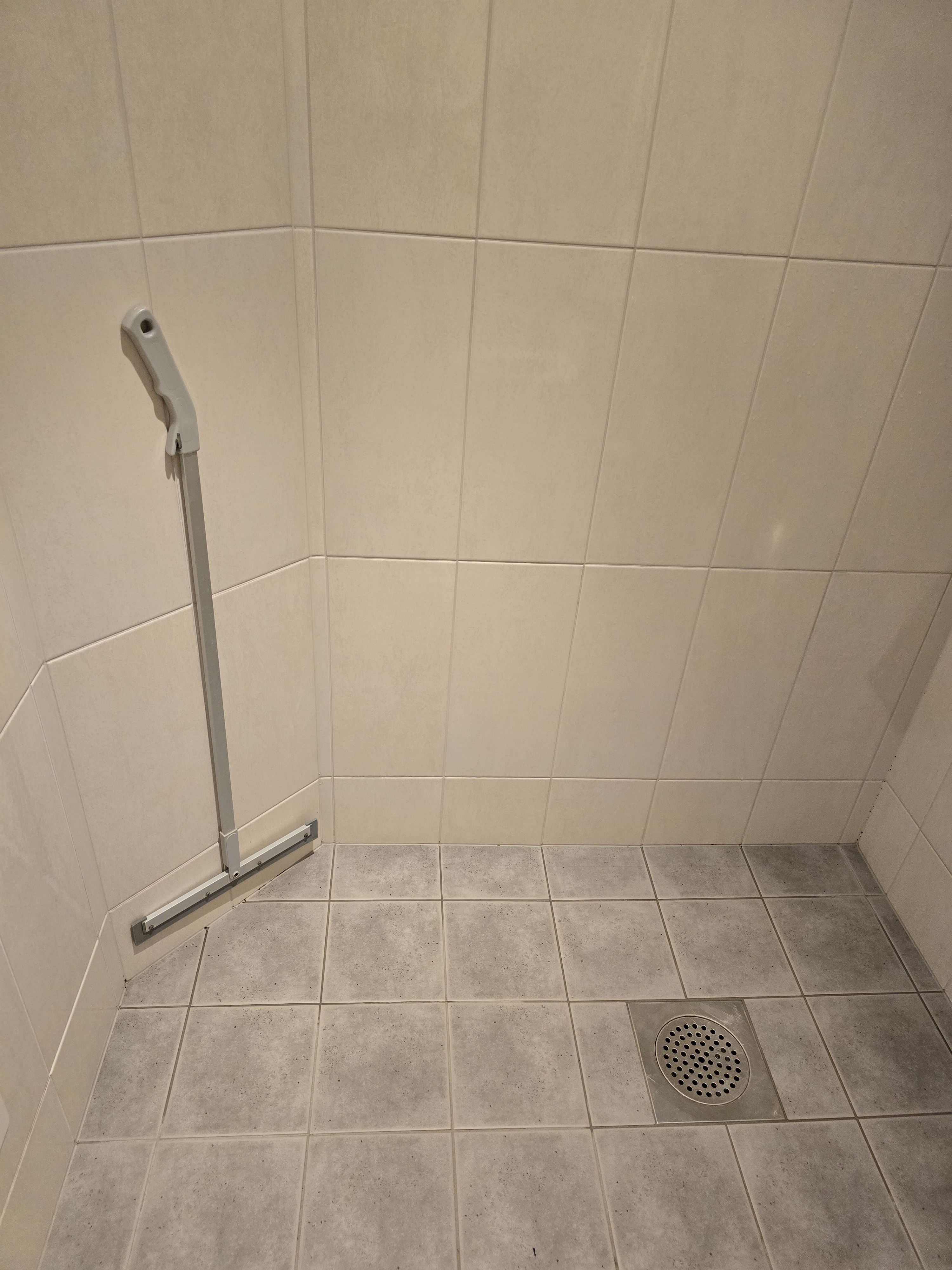 The floor wasn't sloped correctly for the drain to work so the solution was to provide a squeegee