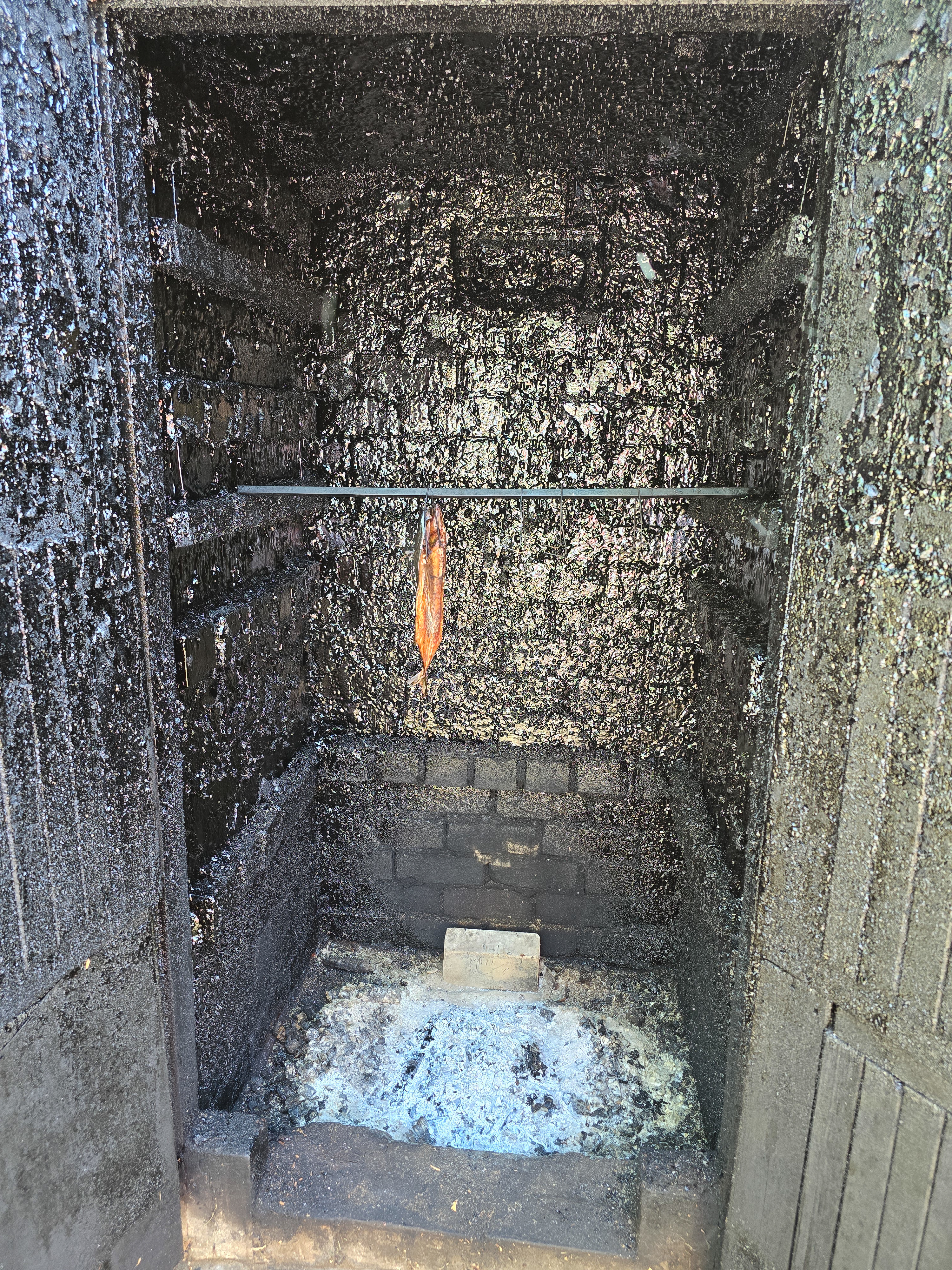 The smokehouse. The fish we ate for lunch were smoked that morning.