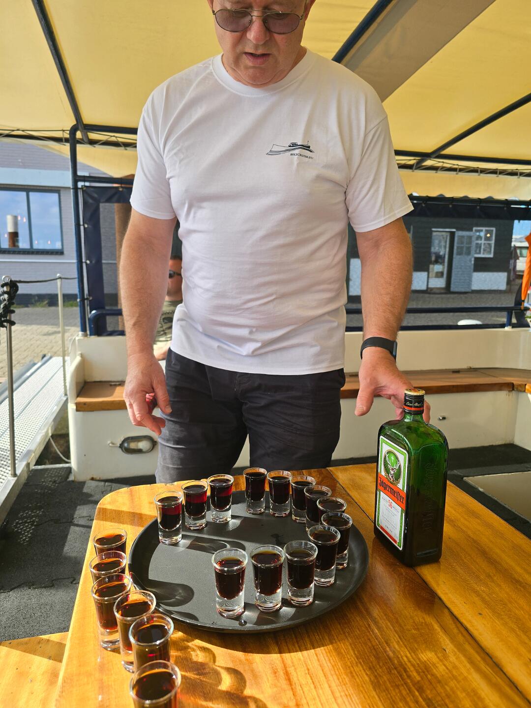 A private boat docked alongside us and had to walk across our boat to get ashore. The tradition is that the "toll" is a botttle of liquor so they shared some Jagermeister with all of us.