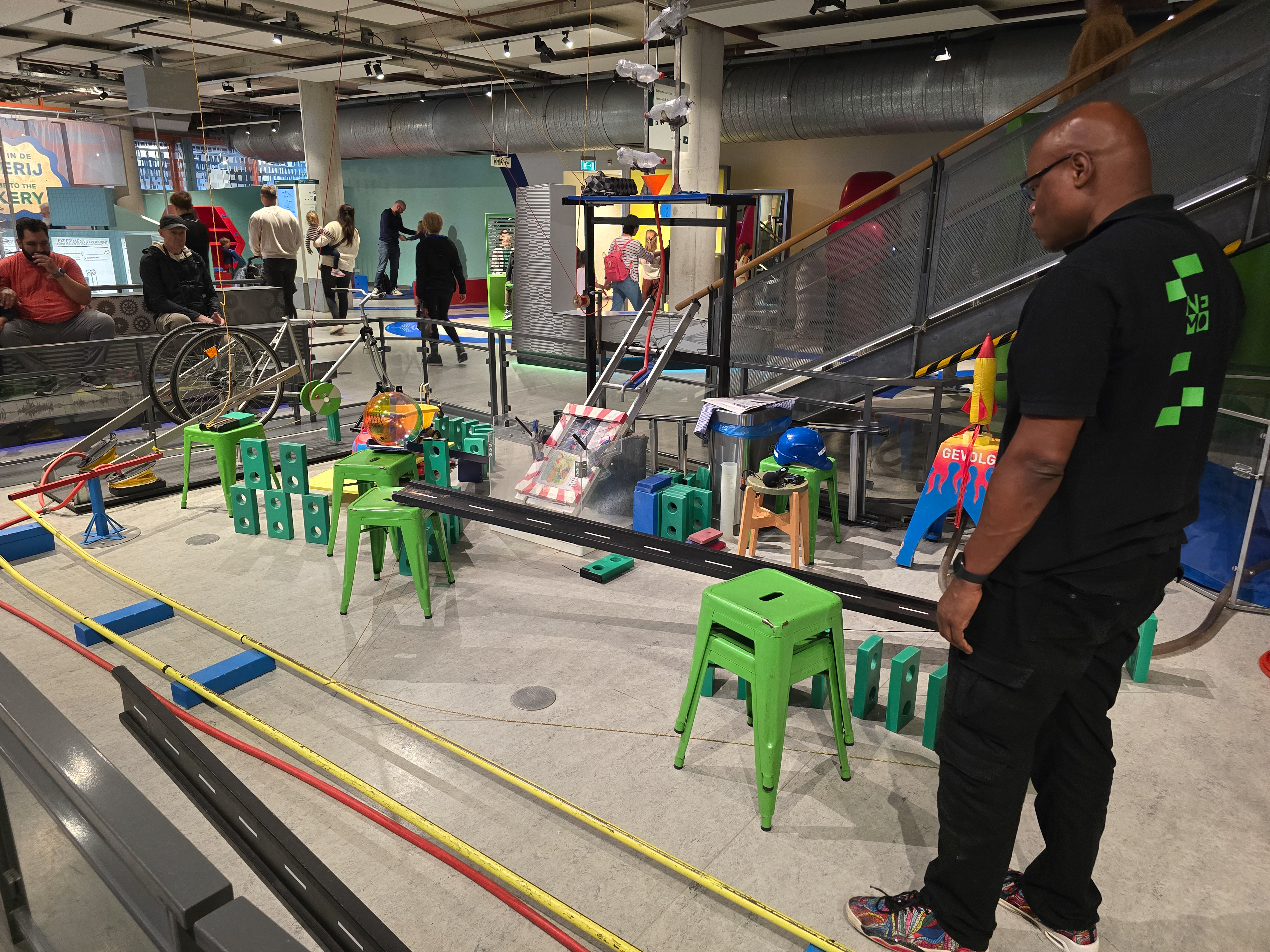 A "Rube Goldberg" game/machine setup in the science museum