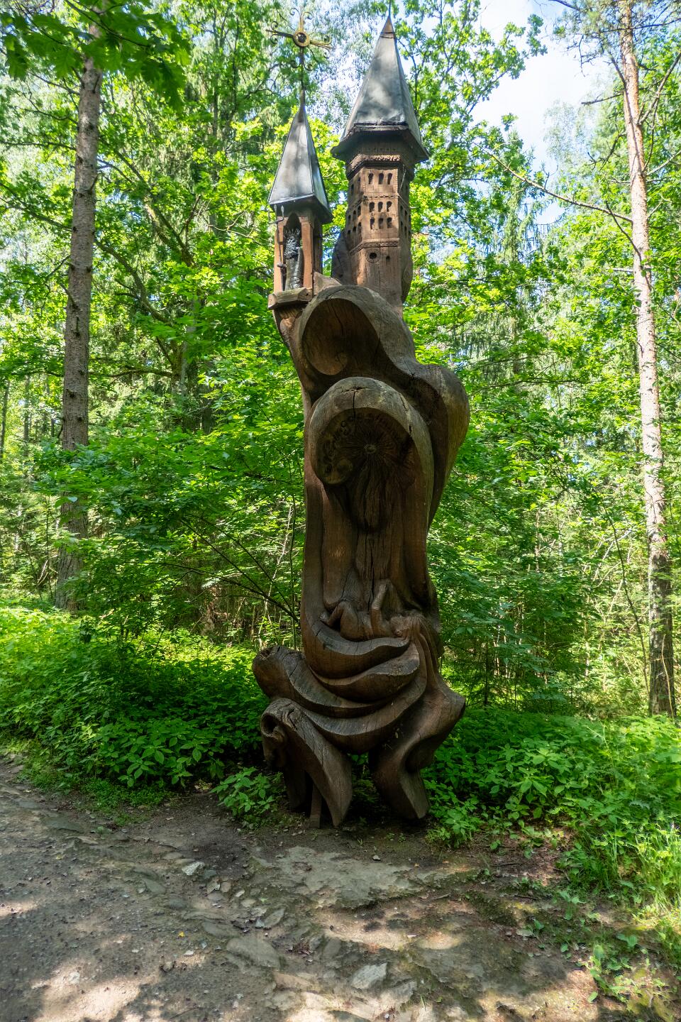 We took a long walk through the forest when these carved wooden statues had been placed.. Hundreds of them.