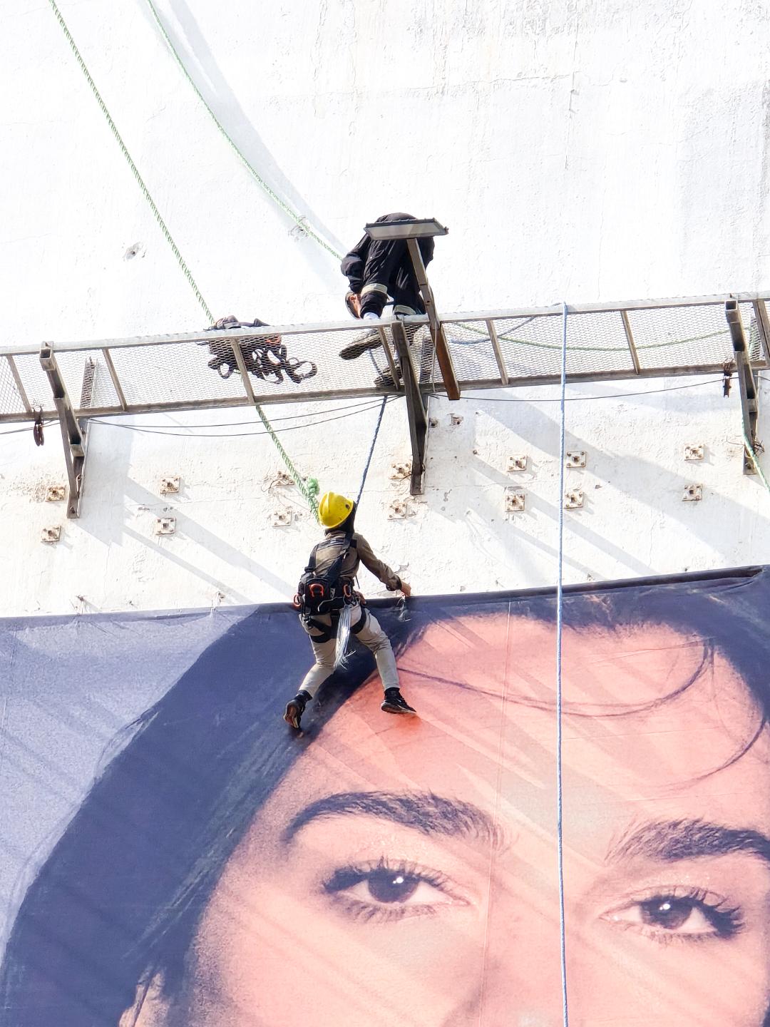 Definitely no OSHA inspectors on this job. I should have taken a close-up of the frayed lines they were using.