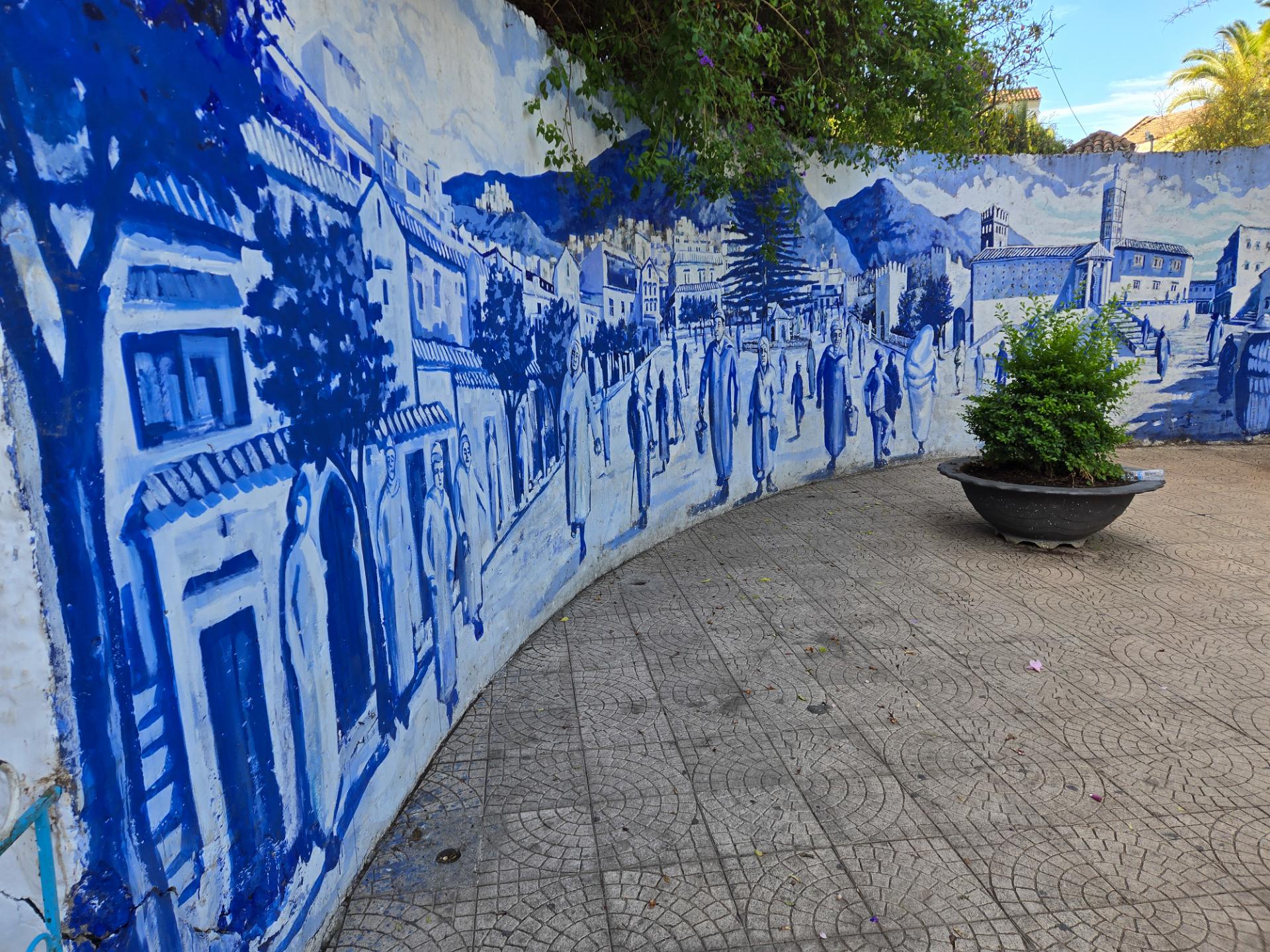 In the city of Chefchaouen. The dominant blue color is a recent development to provide civic identity for tourism. It's worked.