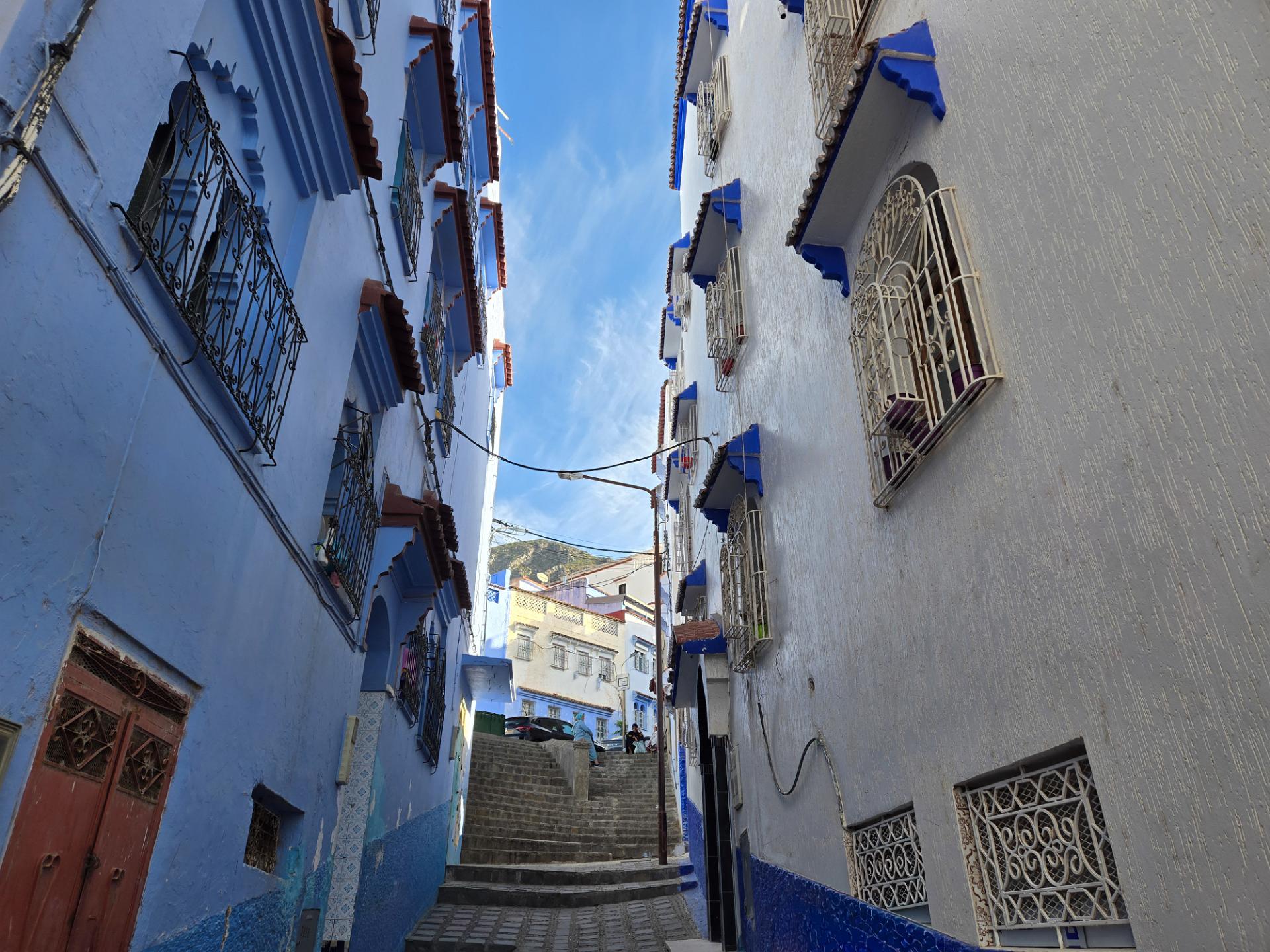 In the city of Chefchaouen. The dominant blue color is a recent development to provide civic identity for tourism. It's worked.