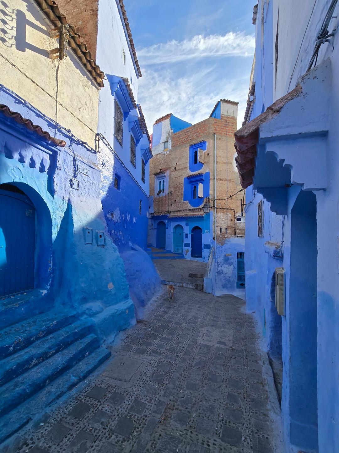 In the city of Chefchaouen. The dominant blue color is a recent development to provide civic identity for tourism. It's worked.