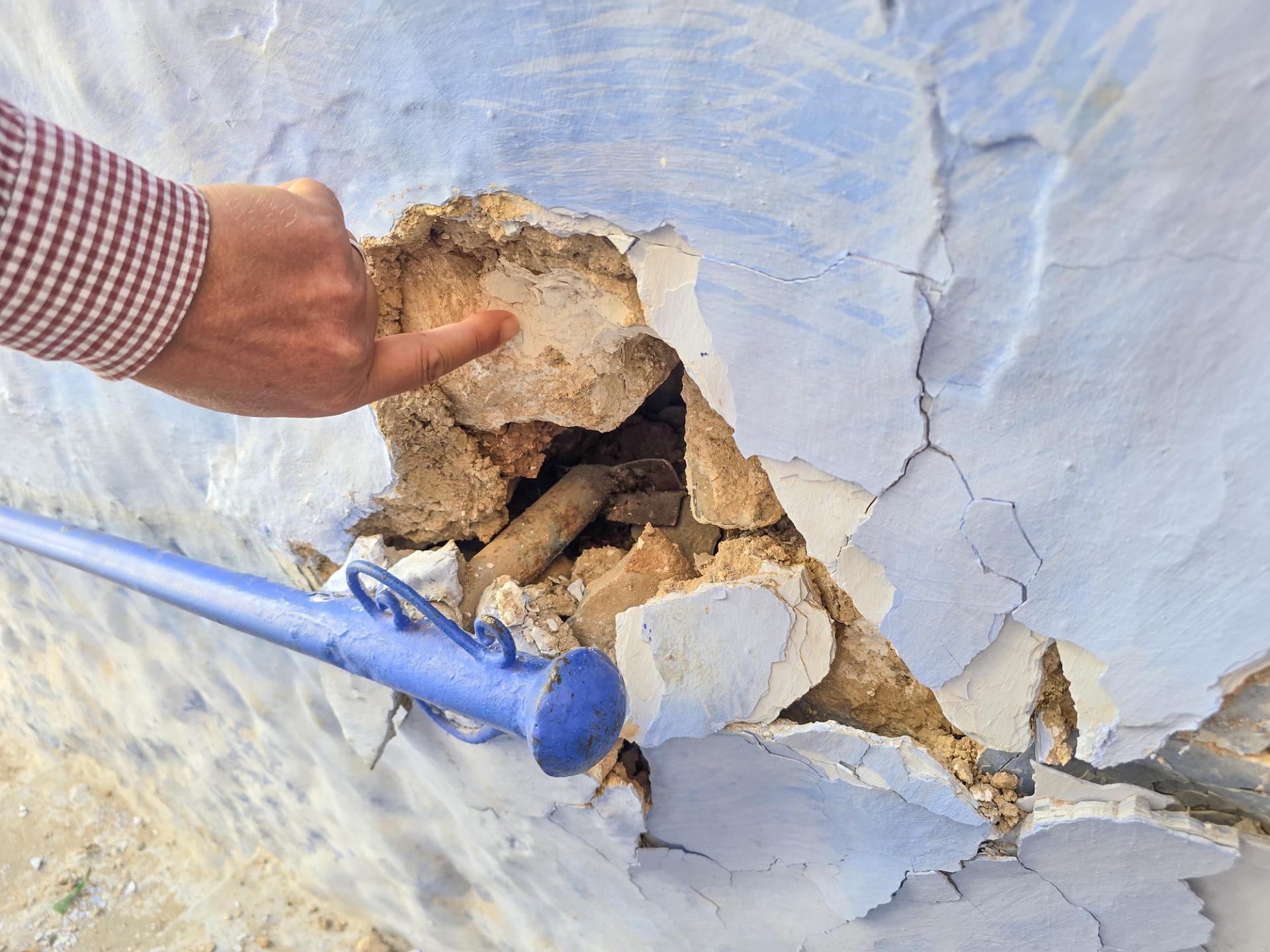 Guide showing the various layers of paint and plaster built up over hundreds of years