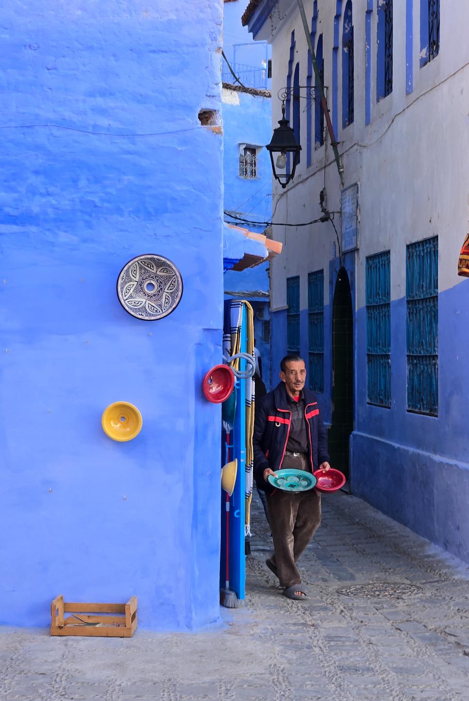 In the city of Chefchaouen. The dominant blue color is a recent development to provide civic identity for tourism. It's worked.