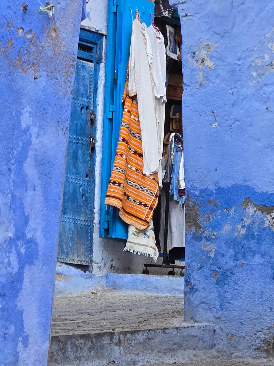 In the city of Chefchaouen. The dominant blue color is a recent development to provide civic identity for tourism. It's worked.