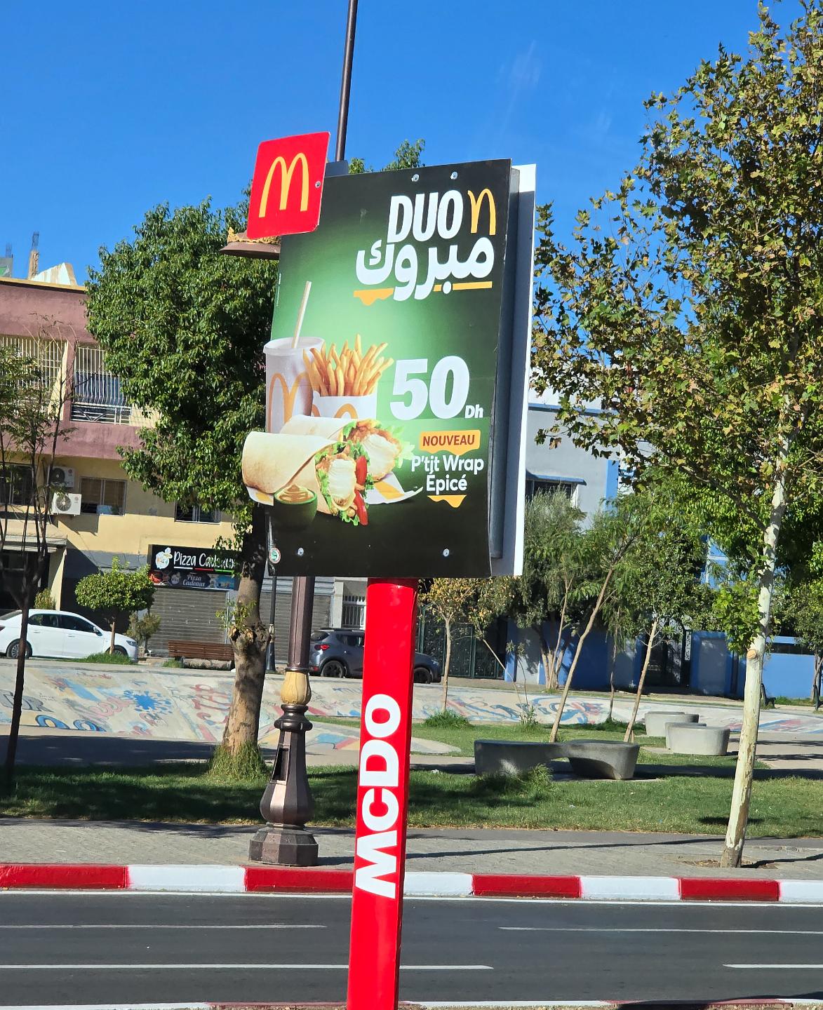 McDonalds has polluted the entire world.. About $6 for a wrap, a drink, and fries. It looks like two wraps but it's probably one cut in half and re-arranged for the photo.