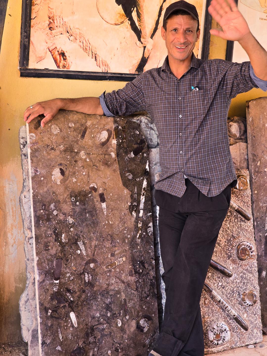 Tour of a shop that quarried fossils and converted them into table tops, sinks, and decorative items.