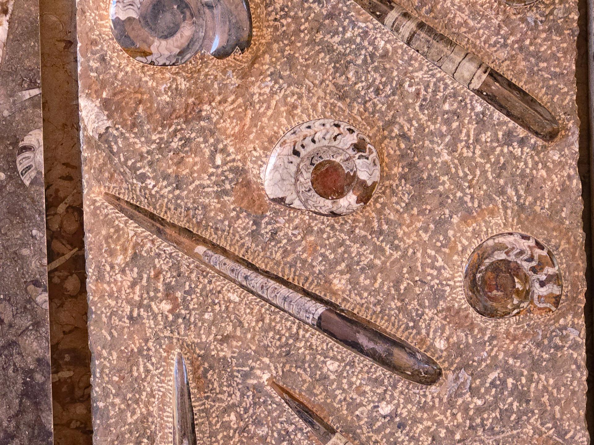 Tour of a shop that quarried fossils and converted them into table tops, sinks, and decorative items.