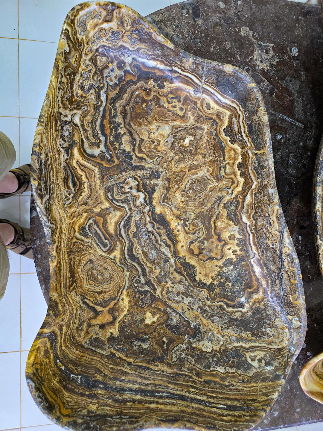Tour of a shop that quarried fossils and converted them into table tops, sinks, and decorative items.