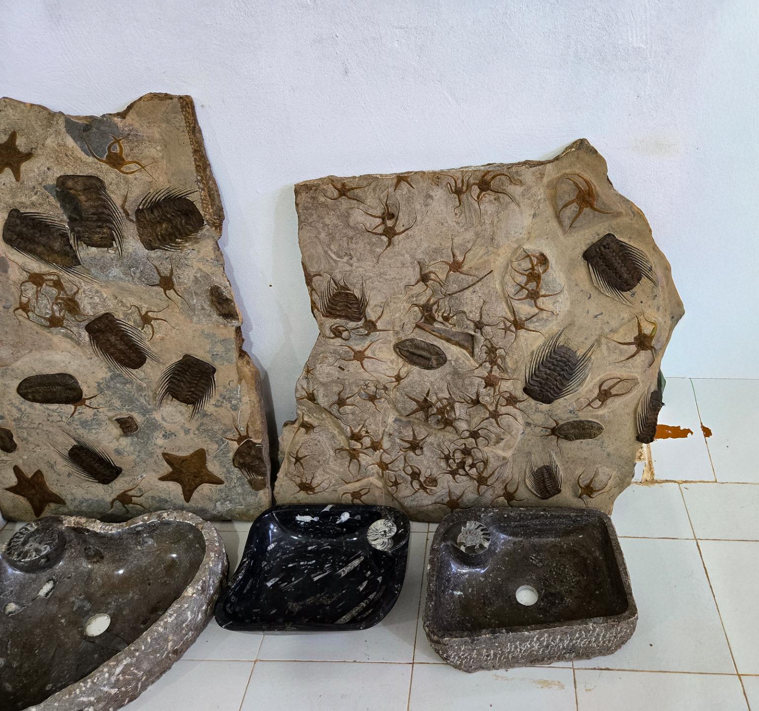 Tour of a shop that quarried fossils and converted them into table tops, sinks, and decorative items.