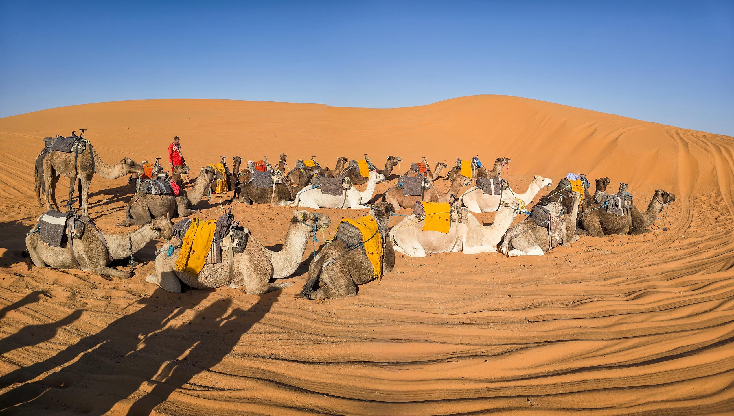 The journey into the dunes of the Sahara desert with an overnight stay in a tent camp, one of over fifty such tourist camps.