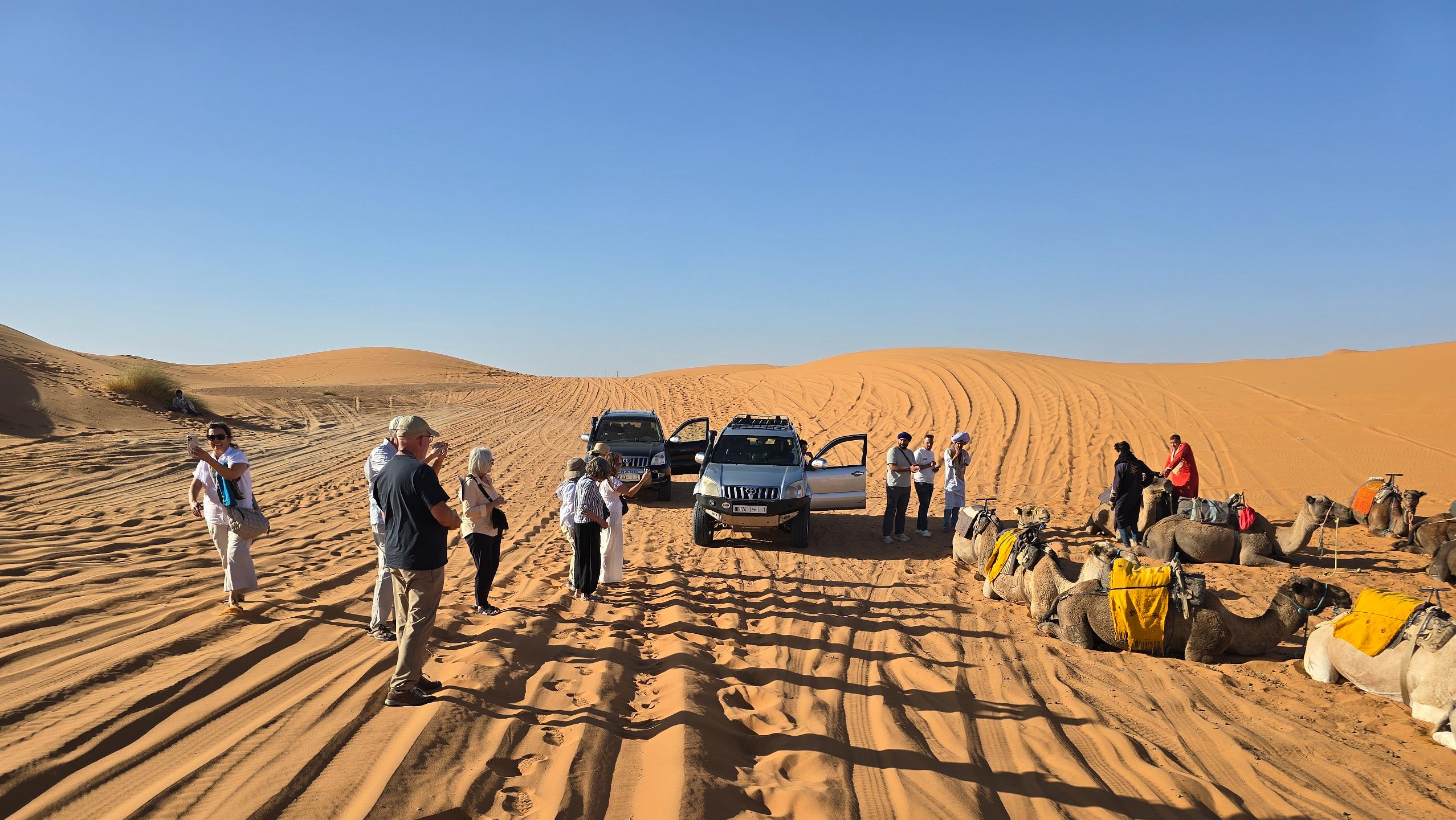 The journey into the dunes of the Sahara desert with an overnight stay in a tent camp, one of over fifty such tourist camps.