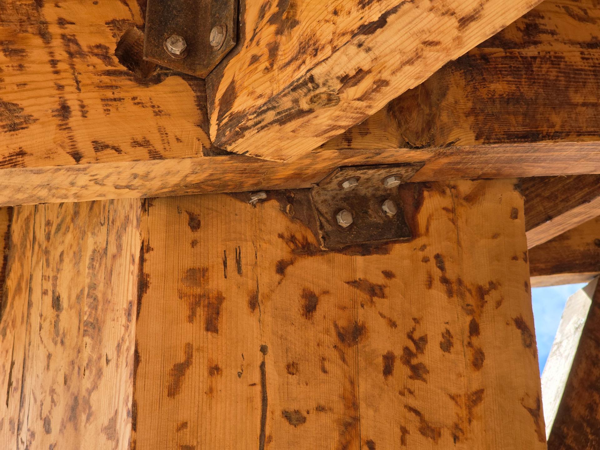 This roof looks like it's structured for heavy loads but this is the Sahara - not a chance of snow. Close examination shows that it's really held together with small nails and screes.