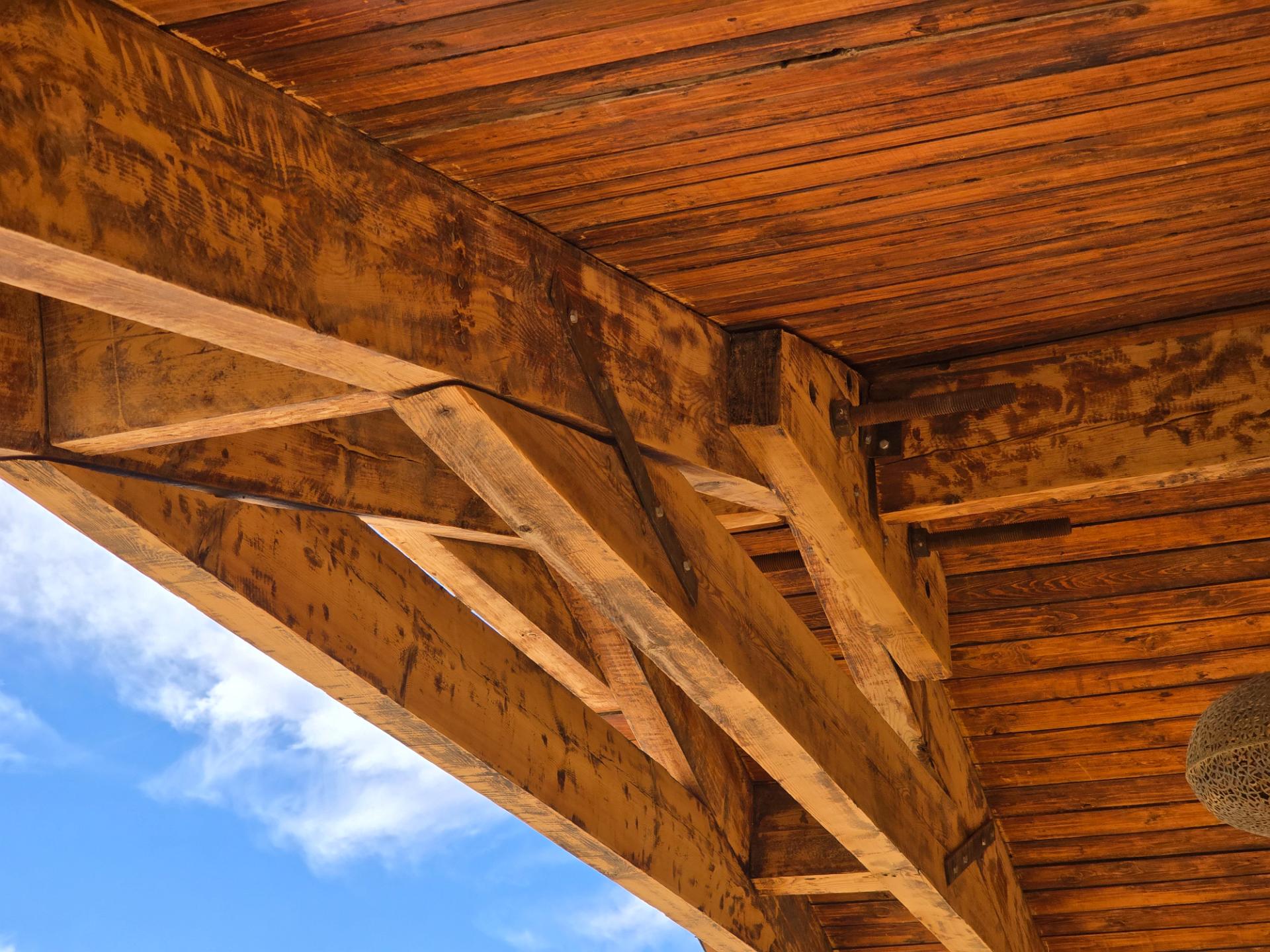 This roof looks like it's structured for heavy loads but this is the Sahara - not a chance of snow. Close examination shows that it's really held together with small nails and screes.