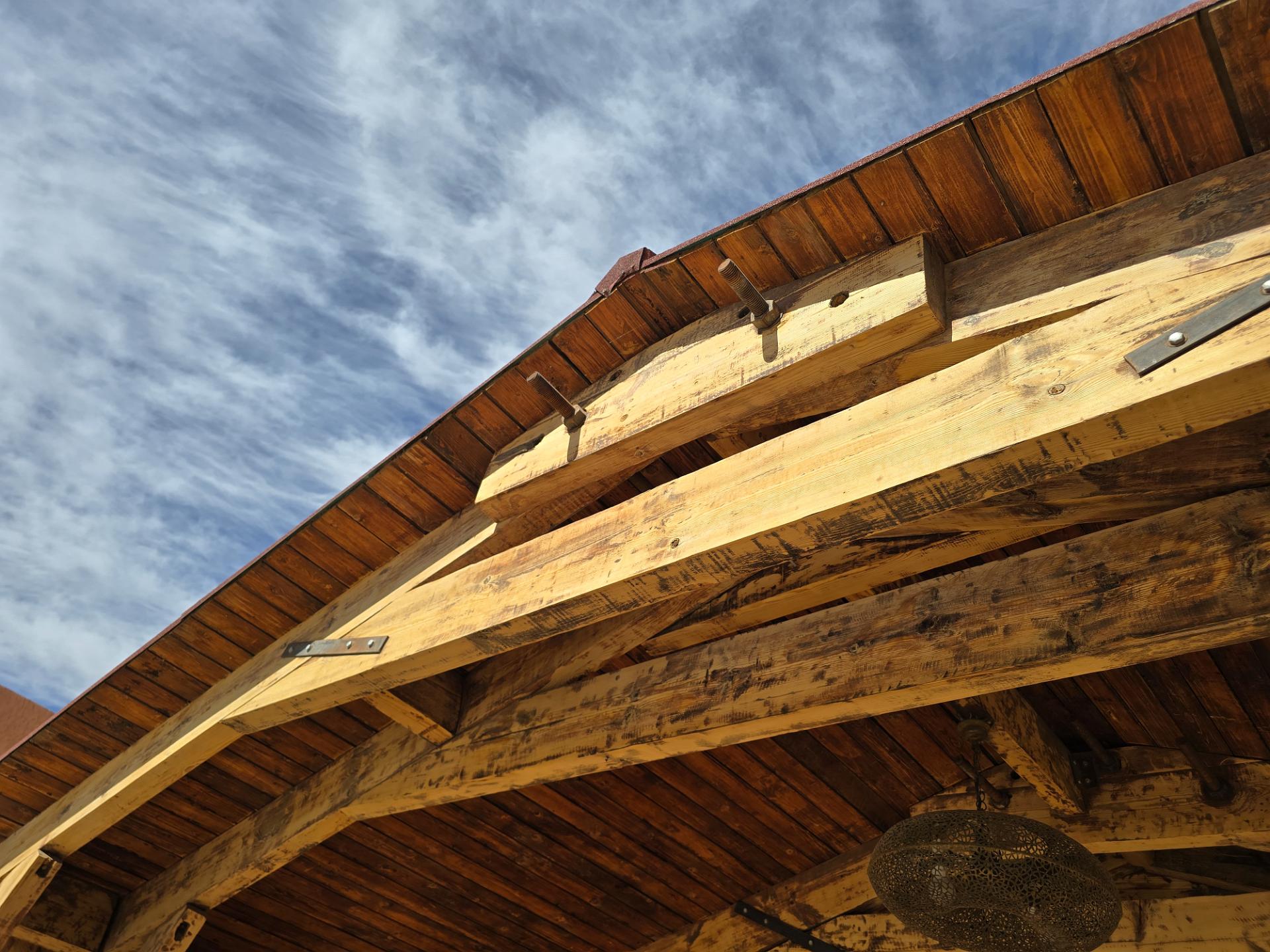 This roof looks like it's structured for heavy loads but this is the Sahara - not a chance of snow. Close examination shows that it's really held together with small nails and screes.
