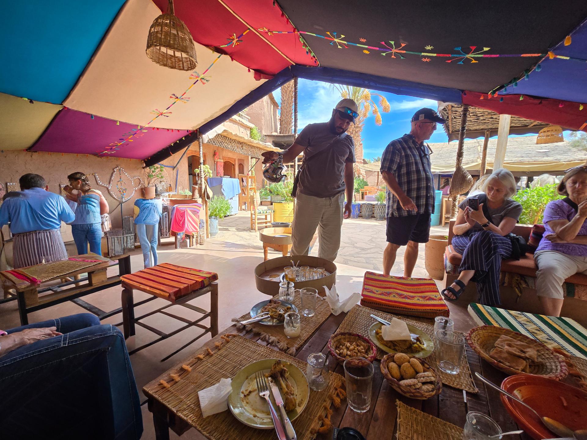 Ahmed pours tea at lunch