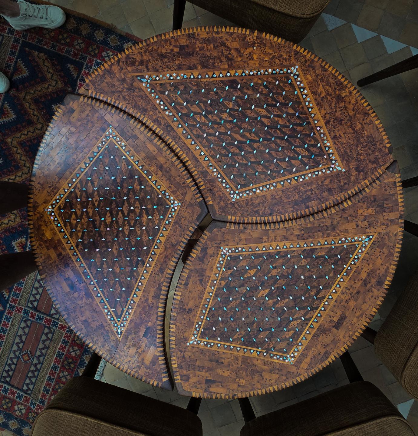 Just another beautiful inlayed table top. Actural three tables that nest together.