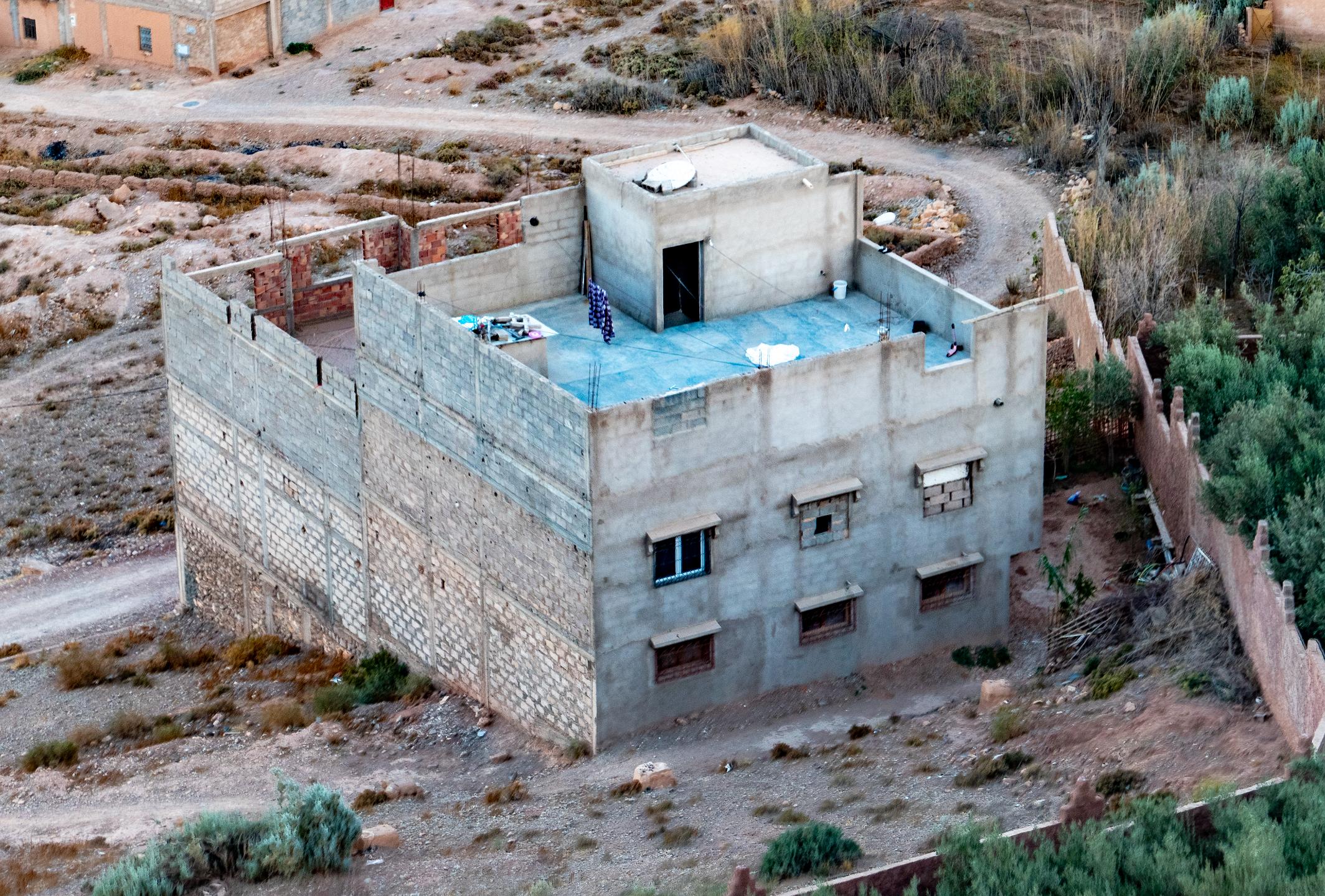 This building is incomplete but occupied. This is often done to avoid taxes since taxation doesn't begin until construction is complete.